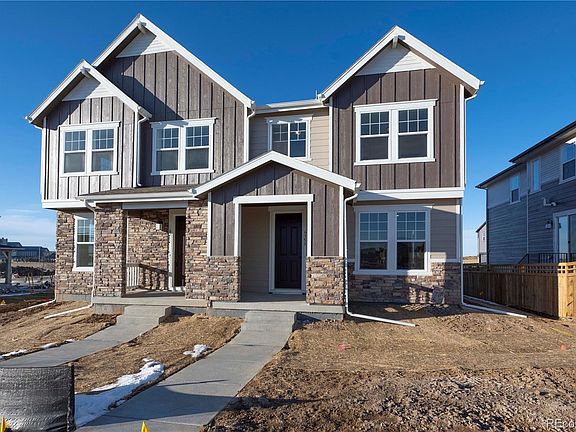 This 1671 packs a punch! Having the best of both worlds. Enjoy your first floor space with oversized kitchen island for all your cooking and entertaining needs. The second floor has a primary bedroom, 2 more beds that can be used an office/gym and an oversized loft for that extra hangout space. This floorplan has it all. The best part...you still have a chance to enjoy our studio process to make this home yours! This private side yard home includes a 5ft fence included and we are a low maintenance community. Please enjoy the 7 parks, one of the largest in all of Colorado boasting 22 acres includes BBQ, basketball court, Tree house, community gardens and corn hole! This home is sure to please. Come see us today! The Listing Team represents builder/seller as a Transaction Broker. *Interior photos are of model home and not actual home*