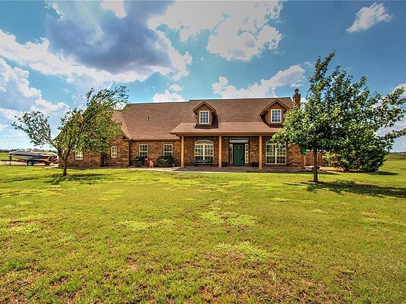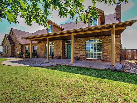 Welcome Home to country living close to the city! Beautiful home with a huge front porch nestled on 5 acres in the highly sought after Piedmont School District! Amazing sunrise and sunset views! New in the last 2 years...interior paint, blinds, living & master carpet, microwave and cooktop. Stunning stone fireplace with rustic woodwork welcomes you into the spacious living room. Kitchen features custom granite, built in oven, island with storage, and a built in desk with hutch plus a fantastic view of the backyard from the kitchen sink. Master suite boasts an oversized whirlpool tub, double vanities and huge walk-in closet. Relax in your backyard at the fire pit while the kids play on the antique merry go round. Peace of mind with a large in-ground storm shelter and 18 KW generator. Beautiful crown molding in the living, kitchen and study/4th bedroom. Smart doorbell and thermostat. Full gutters. Propane tank recently filled.