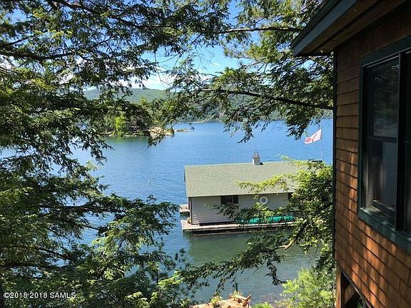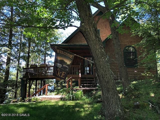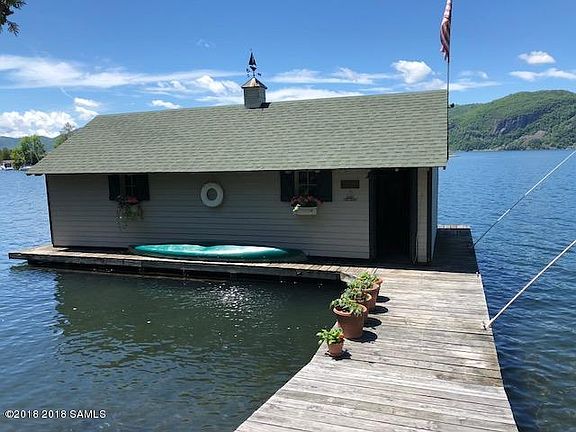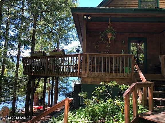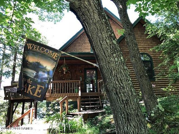 This year-round home was totally re-built finest custom construction new from the ground up in 2006. It's lakeside setting brings one all but on the lake on three sides with lovely windows, sliding doors, decks and covered porches. The main floor is a great room with custom kitchen, which wraps around through a large dining area to a comfortable living space with finest lake views, but lightly filtered by pines and hardwood trees. All 3 bed rooms are very large, with the main floor bed room and bath conveniently accessible. Ascending to the second floor there is a second large full bath and two more bed rooms with lake views. On the lower walk out level is a family room opening to a covered porch and a very large spare room, laundry/storage and utility space. Covered boathouse!