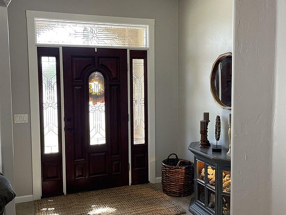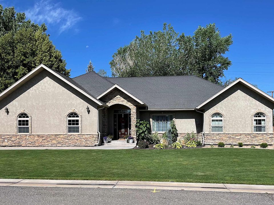 Yard of the Year at this beautiful ranch style home in Waterfront Way! The pride of ownership shines through this property from the detailed landscape front and back to the immaculate interior of the 3 bedroom, 2 bath home. Large entryway into the great room featuring hardwood floors in the living room, large dining area w/double tray ceiling and patio doors to the rear patio. The kitchen features all newer stainless appliance's, granite counters, breakfast bar and large pantry closet. Large master suite w/double tray ceiling, private bath w/double vanity, jetted tub in tile surround, seperate shower and a walk-in closet w/plenty of space. 2nd bedroom is extra big w/easy access to the guest bath. 3rd bedroom is extra big, too and features a bay window. Utility room includes the newer front load washer & dryer and cabinets. Updated floor coverings and interior paint. The backyard is JUST AWESOME w/covered patio - berm area w/mature trees, flowers and raised beds - firepit area - all fenced. HOA irrigation water for the sprinkler system, rv parking space and access to the river.