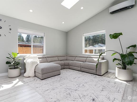 Stunning, 3 bed 2 bath home on a large fenced lot complete with RV parking! Impressive covered entry leads to an open living room and a gorgeous kitchen with double oven and induction cook top, island with quartz waterfall, white cabinets and a spacious pantry. The dining room opens to a covered deck and a fenced back yard. Master bedroom is generous with walk in closet and an amazing 5 piece bathroom that includes a stand alone tub, glass walled shower and beautiful tile work. 16ft by 120ft greenbelt area with on the left side of the yard included in lot size is in a fully prepaid 100 year lease and includes a shed for use by new owners. Efficient 4 zone mini split system, each room temp controlled separately! All appliances stay!