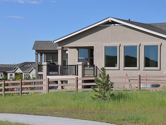 Maroon Bell paired patio ranch plan with 3 car tandem garage in Wolf Ranch. Kitchen Features white maple cabinets with chocolate glaze, quartz counters, stainless steel appliances, gas cooktop. 3 bedroom, 2.5 bath home with formal dining. Includes gas fireplace in great room, air conditioning and wood closet shelving. Barn door at master. Finished garden level basement includes 1ft taller ceilings, wet bar, plus 2 bedrooms, 1 bathroom and recreation room. Exterior living includes extended deck and gas line.