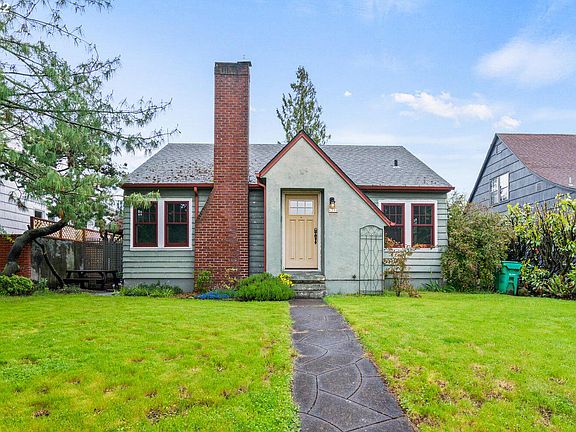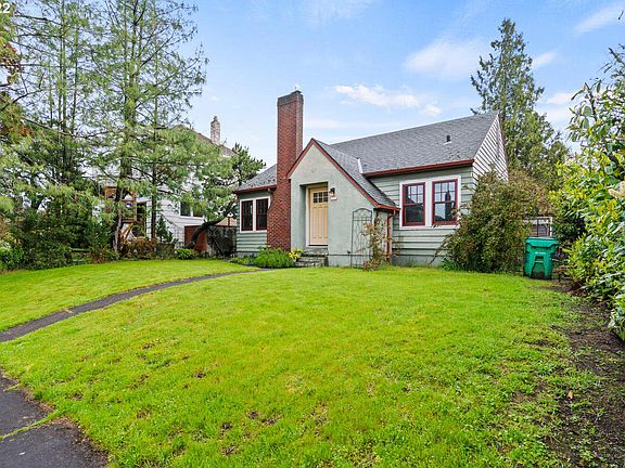 Charming home with wood floors, beautiful fireplace, built ins, gorgeous Knotty Pine walls/ceiling in 3rd HUGE bedroom (19x13) upstairs plus Loft area. High ceilings in basement. Home has 2 car garage plus foundation/framing-rehab for additional 2 car garage (could be total of 4 car garage when finished, or possible ADU? Lower level has outside door access for potential as possible ADU/Airbnb? Opportunity to make this shine with little TLC.! Great area close to Peninsula Park.