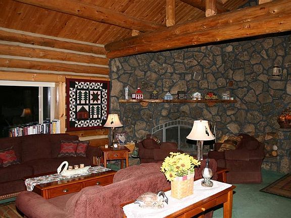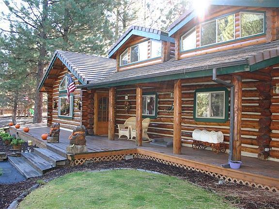 Spectacular log home nestled in the Pine trees on 2.34 acres just west of Bend in popular Saddleback. Very bright w/skylights, windows & many lights. Spacious 4 bedroom home w/vaulted living room & rock fireplace, vaulted great room w/cabinets & huge family room w/bath. Pine kitchen w/tile floor, vaults, skylight & pantry. Spacious master suite w/deluxe bath & 3 closets. Extensive decks, covered porch & hot tub. Upstairs bedroom, bath & office. Huge RV garage, garage with shop & RV parking.