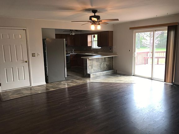 Freshly painted, approx 1800 sf. Kit opens to Family Rm. New patio door (2012) off family room to expansive deck. Also patio door off Master leads to the deck. Circular drive, level lot.