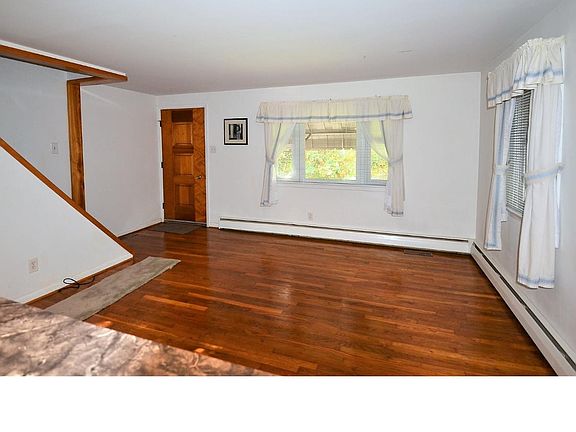 This charming 4 BR, 1 Bath Cape Cod with 2 garages and 2 driveways is a privacy lover's dream home on over half acre! The front door welcomes you into a cozy living room with a stairway leading to two bedrooms upstairs and just steps from the eat-in kitchen that flows into the two main level bedrooms and a full bath. Off to the other side of the kitchen you'll find a tiled enclosed porch that spills you into your covered back patio overlooking a lovely, partially fenced in yard. Additional yard extends beyond the fenced in area and surrounded by trees. Central air, newer roof, some newer carpeting, nice hardwoods. Detached garage great for extra storage or parking your car. Attached garage can also be used for storage or converted into more living space down the road. Make this house your home!