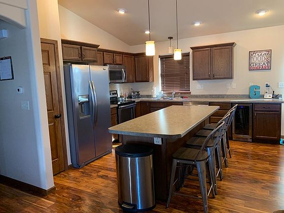Welcome home to this 4 bedroom 3 bathroom split entry house! The main level features a beautiful kitchen with a large island and stainless steel appliances. The master bedroom has a master bath and walk in closet. There is a 2nd bedroom, full guest bath, large laundry room, and a cozy living room all on the main! You'll enjoy the fully finished basement with 2 more bedrooms, a full bath, large storage room, and large family room. You'll love the 3 stall heated garage with hot&cold water and floor drain. The backyard is fully fenced with maintenance free fencing making it a private getaway with a deck, shed, and a poured patio with a walkway. There is also a concrete parking pad for extra room! Contact your Realtor today so you don't miss this one!
