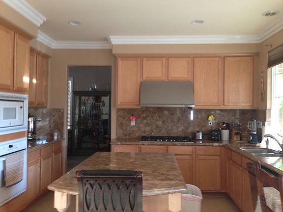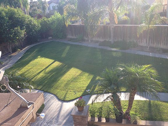 built by D. R. Horton. Spacious floor plan, vaulted high ceiling, 3 car garage, covered patio,beautiful backyard w/ palms, fruit trees, and island bbq. Balcony off master bdrm. Large island kitchen w/ walk in pantry. Inside laundry rm.