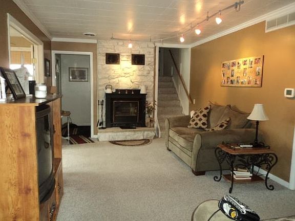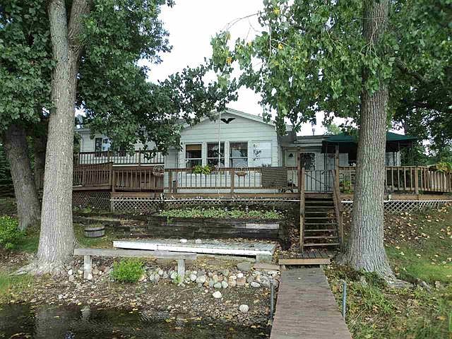 Looking for a one-of-a-kind picturesque setting on a quite fishing lake? This year round lakefront home has been well maintained and updated. It features multiple decks to fully capture the lakefront views. Covered awning included to provide shade. Inside you will be greeted with updated living spaces--u-shaped kitchen with breakfast nook, living room with newer carpet & paint. The main level is completed by a den(possible third bedroom) and full bath. Upstairs you will find two spacious bedrooms and a newly updated full bath. There is a two car garage and large yard. A must see lakefront property.