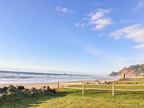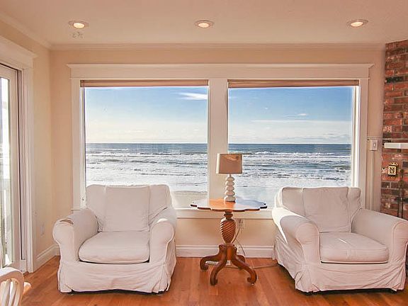 Successful Vacation rental! This New England style home is a rare find! Low beach, ocean front home with million-dollar views! With Protected View Covenant that ensures no deck or structure shall be built that will block the Southern view (from 6345 NW Logan Rd). Enjoy miles of sandy beach in the desirable Roads End Area. Beautiful views of Pacific Ocean can also be seen from the deck or while relaxing in the hot tub. This fantastic home features many upgrades including hardwood floors, tile, granite, a gas fireplace and cedar siding. Use for your exclusive beach home or take advantage of this successful vacation rental. (Buyers to honor all bookings). 3D TOUR AVAILABLE.