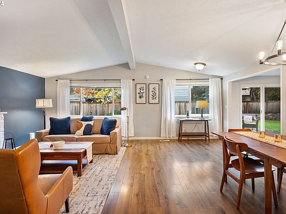 Adorable one level in the Highland neighborhood of Beaverton. Desirable Ranch style with 3 beds and 2 baths. Enjoy the spacious living room/dining room combo with vaulted ceilings, wood burning fireplace, new engineered wood floors, and tons of natural light. Updated kitchen w/newer cabinets, tile countertops, Whirlpool stainless appliances, kitchen nook and slider to yard. Step out slider to your private patio and fully fenced landscaped yard, side yard with raised garden beds. Updated hall bathroom with shower/tub and new sink. Primary bedroom with updated bathroom, ceiling fan, and new engineered wood floors. Adorable 2nd bedroom with custom paint, chair rail, and new floors. Oversized 2 car garage, NEW forced air furnace and new air conditioner. Conveniently located near freeways, Washington Square Mall, Nike, restaurants, public transit and minutes to downtown.