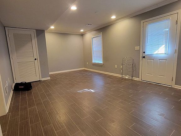 Townhouse with two car garage and big room at the back of garage, HVAC and hot water heater. Small storage under stairs next to garage.