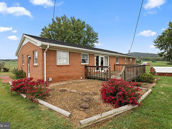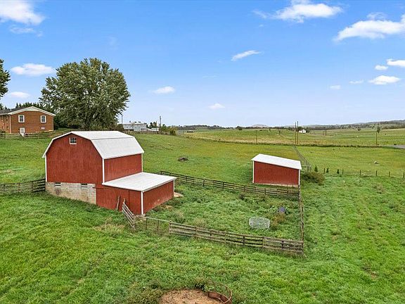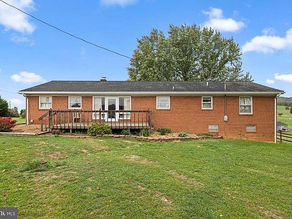 Welcome to this charming brick rancher, perfectly situated on 6.93 acres of picturesque land, offering breathtaking mountain and farmland views. A portion of the property is already fenced, making it ideal for farm animals. The property features a well-maintained barn, a run-in shed, and plenty of space for your farming needs. Inside, the home is well cared for, with a traditional layout that offers room to make it your own. The one-car garage includes a finished storage room and a laundry area, leading into a bright dining room that opens to a spacious kitchen. The kitchen boasts ample cabinetry, a built-in table, and easy access to a large deck—perfect for entertaining while enjoying the scenic views. The living room, complete with a cozy wood-burning fireplace, provides sweeping views from the large front window. Down the hall, you'll find three bedrooms, including a primary suite with an attached bath and walk-in shower. A guest bathroom completes the main level. The partially finished basement offers even more potential, featuring a large family room with a wood-burning stove, a kitchenette with a refrigerator, stove and sink, and plenty of storage space. An unfinished section of the basement is ready for your creative touch. This home offers the convenience of one-level living and is ready for its next owners to move in and enjoy. Please note, this property is being sold as-is, where-is. All Showings must be by appointment only...all clients must be with their Agent when viewing and going on the property (there are cameras). Call to schedule your appointment today!