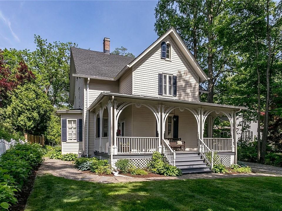 Located in the historic Rhinebeck Village, this home is beloved for its perfect blend of convenience to a charming village and the peacefulness and ease of country life. This lovingly maintained c1797-1850 Carpenter Gothic-style home, with its charming gingerbread trim, is just one block from the vibrant village center, and near the town farmers' market, shops, restaurants, Upstate Films, Crystal Lake, schools and community events. It is well set back from the street and sited on a large residential lot, serenely nestled in its picturesque gardens. Inside the large-scale rooms are high ceilings, alcove windows, pocket doors, beautifully preserved architectural details and pristine wide-board floors bathed in sunshine. The heart of the home is the gracious first level with a spacious foyer, dining room, living room, and family room with its own door to the outside and half bathroom. The L-shaped kitchen with Fisher & Paykel and Bosch appliances is a cook's delight—with plenty of counter space, concealed laundry and a glass door that opens to the partially covered back porch, where you can enjoy your coffee and paper in Rhinebeck's exquisite morning sunlight, and return for conversations with friends in afternoon shade. A few steps down will lead you to lush perennial gardens, fruit trees, lilac bushes and a pea-stone patio. It is a wonderful space to host parties, and a peaceful place to curl up, listen to the birds sing or read a book. There is a large parking area to provide plenty of off street parking for owners and guests, space for a swimming pool, and with village approval, the possibility of additional development. The home's second level, reached by front or back stairways, has a landing currently used as a home office, a private primary bedroom area with a bathroom, and dressing room or second office. There are two guest bedrooms and another full bathroom. Under the carpet are 8-inch wide pine floors. The home’s third level offers an additional 480 square feet of space suitable for finishing. The seller has an extensive list of improvements to share that details how they have diligently maintained and upgraded major systems over the last 14 years: the roof with a lifetime guarantee is 8 years old, a heating system/boiler new in 2019, and new septic in 2021. As well as being close to everything the Hudson Valley has to offer this home, which provides quiet, space and privacy inside and outside, is 5 min from Amtrak in Rhinecliff, 20 min to Kingston, 25 min to Metro North in Poughkeepsie, and 1 hour 45 min to the GWB. Additional Information: Amenities:Dressing Area,Storage,Tennis,HeatingFuel:Oil Above Ground,