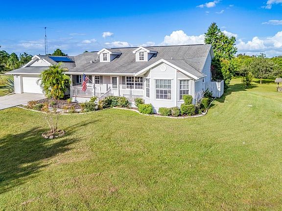 Charlotte Ranchettes Beauty... BACK ON THE MARKET !!! This gated 2.5 acres holds a beautiful 2004 built home with attached 2 car garage and a detached garage/ workshop with air conditioning (898 sq ft), shed, fire pit and pond. Inside this home you will find an open split floor plan, shaker kitchen cabinets, double oven, cook top, stainless steel appliances, 2 full bathrooms, 1 half bath that can be used as a future pool bath, master bedroom has a walk in closet, dual sinks, walk in shower, toilet room, cathedral ceilings in the living room and kitchen with dormers providing natural light to the home, solar hot water heater, air conditioned storage room off the garage that could be used as an office, safe room, workshop or storage. The two story detached garage displays the same exterior decor to match the main house, storage above the garage that can be a man cave, she shed or additional storage. Plenty of room for toys, call today !!