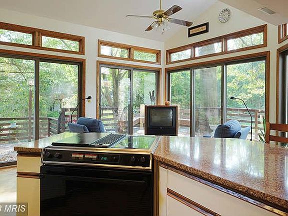 Wooded homesite-Generous room sizes, hardwoods, expanded kitchen w/granite counters, ample cabinetry, dual sinks, breakfast nook, and breakfast bar that overlooks the sunroom addition w/its cathedral ceiling, large windows and sliding doors. Custom tiered deck w/a pergola, vaulted ceiling & fans. Downstairs is finished with a rec room, work room & loads of storage.