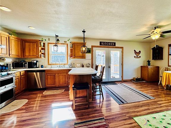 OUTSIDE reveals a nature lover's paradise with a community of animals you'll enjoy with plenty of spaces to do so. The 2-car detached garage also offers additional living space, as there is a one bedroom apartment that could even become rental potential. The barn has two stalls, storage, & a hay loft, perfect for equine lovers, while a custom blind offers prime views of the wooded land for hunting enthusiasts. The pasture area includes a run-in shed perfect for livestock to roam, graze, yet be protected.