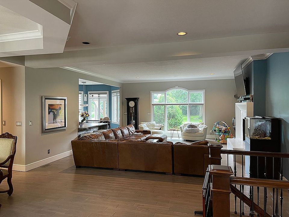 Every room has been remodeled since ownership with high end finishes. Wood flooring, custom trim and doors, permanent paint and gutter guards. 3 bedroom + office, dining, living room on main floor. Lower level fully complete entertainment area with bar, Theater area, pool room and workout/game room. Outdoor entertainment patio with custom grill station and hot tub.