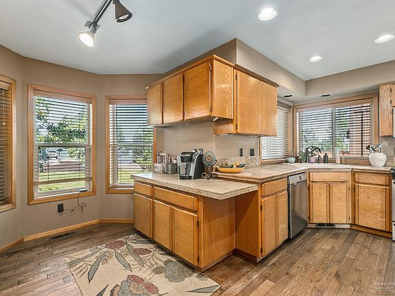 Beautifully updated, single level home, great room style floor plan, on large .7 acre lot in NE Bend with Shop! Heated shop has 440 sq ft bonus room upstairs, included in square footage. Well appointed kitchen with wire brushed hardwood floors, stainless appliances, & travertine counters. 2 steps down to barnwood style dining room. Bathrooms are updated with tile counters and floors. Plenty of room for parking your cars, boat, RV, toys. 2 car attached garage in addition to the shop.