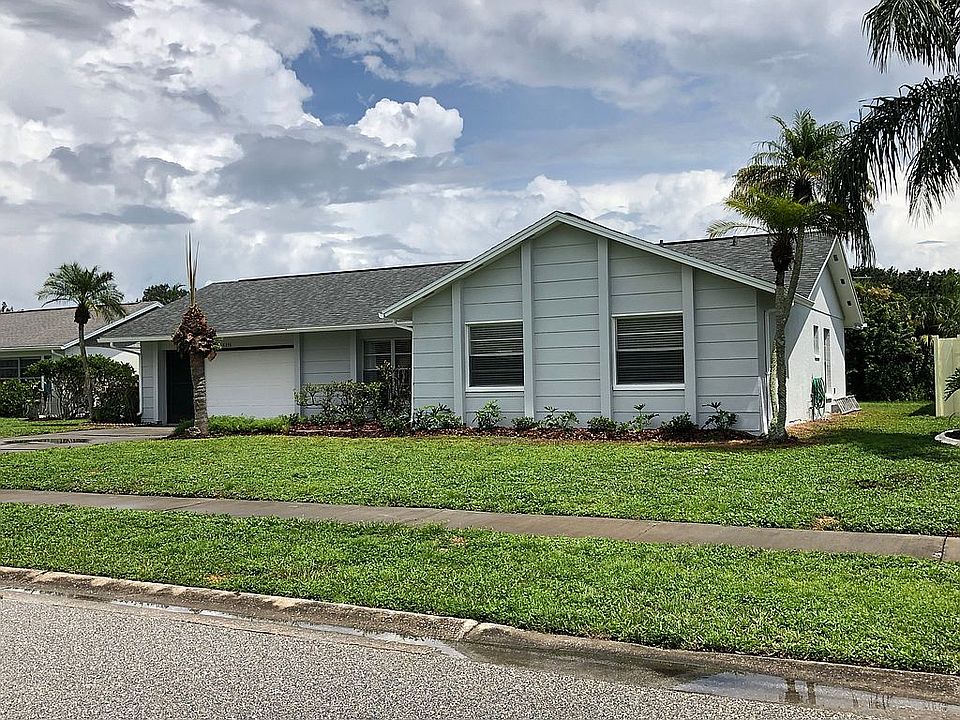 Newly renovated 3 bedroom home with an in-ground pool. Brand new roof. Electric service is new. All new interior and exterior paint. New laminate and tile floors throughout. The kitchen has been updated with new countertops, tiled backsplash, new microwave, dishwasher, and disposal. Side by side refrigerator with ice and water in the door. Stove is just two years old. New sink and faucet. There are new ceiling fans and light fixtures throughout this home. New window treatments. Spacious bedrooms. The master bedroom has an in-suite bathroom and walk-in closet.The bathrooms are updated with new floors, sinks, faucets, toilets, pull down shower heads and tiled walls. The 2 car garage has a newer door and opener. A/C and pool have been regularly serviced. The pool area has been newly coated and offers privacy with fences on both sides of the backyard and a waterway behind. The Furnishings in this home are negotiable. Located in the lovely deeded community of the Gardens of Gulf Cove featuring amenities including large community pool, exercise area, community rooms and tennis courts.