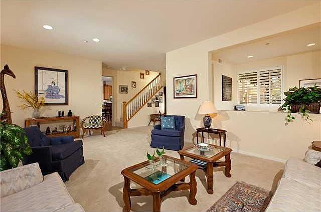 Super value!! Large 3 BR + den townhome in Aviara. Gated community. Largest floor plan in complex. Beautifully staged. Kitchen features stone counter tops, cooking island, lots-o-storage. Family room is adjacent to kitchen and features fireplace. Living room has space for a dining area, ez access to patio, and den could be a 4th bedroom or office. 3 bedrooms are upstairs. Master just recarpeted! Masterbath has dual closets & sinks. Community pool, close to shopping,dining,transportation.