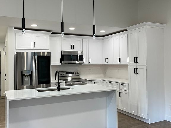 Gorgeous, high end, 3 bedroom 2 bathroom home on a level lot. Open floor plan with cathedral ceilings and lots of light in the living room. Large primary bedroom includes a huge walk-in closet, a five piece bathroom with a freestanding tub and separate shower with luxe glass door! Modern finishes include white kitchen cabinets, quartz countertops, tiled bathrooms, and beautiful easy care floors. Covered deck for year round enjoyment! Complete appliance package includes washer and dryer. Paved driveway all the way to the road. Keep those electric bills down with a hybrid electric water heater and an efficient, 4 zone, Daikin heat pump for A/C and heat. Lot is fully fenced! Hard to find a place with such a high quality finish.