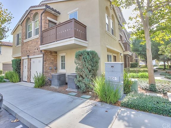 Charming 2 bedroom, 2 1/2 bath end unit condo located in the very sought after Serafina community. One bedroom is located on the first floor with attached full bathroom. Downstairs you will also find indoor laundry area and attached 2 car garage. Upstairs features a large open floor plan. Living room with fireplace that opens up to the kitchen that boasts granite counter tops, dark cherry wood cabinets and stainless steel appliances. The dining room is off the kitchen and features a ceiling fan with access to the balcony, perfect for BBQing. Master bedroom features a walk in closet and full bath with double sinks. There is also an additional half bath off the living room. Laminate flooring throughout except for stairs and master bedroom. Newer paint. The beautiful Serafina community offers a sparkling pool, spa, playground area, and nicely maintained grounds. Located walking distance to the all Eastvale shopping, restaurants, gym etc. Easy access to to the 15 fwy and high rated schools. Don't miss your chance to own this gem!