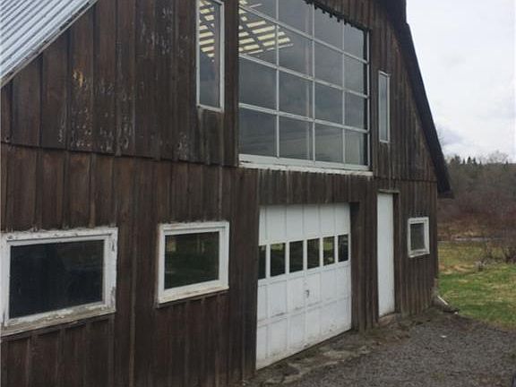 Just in time for hunting and snowmobiling! Large rustic camp on more than 7 acres of land. Building has plenty of storage with an overhead door on one side and living area on the other. A picturesque stream runs through the property and state land lies just across the road.