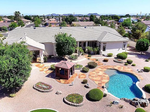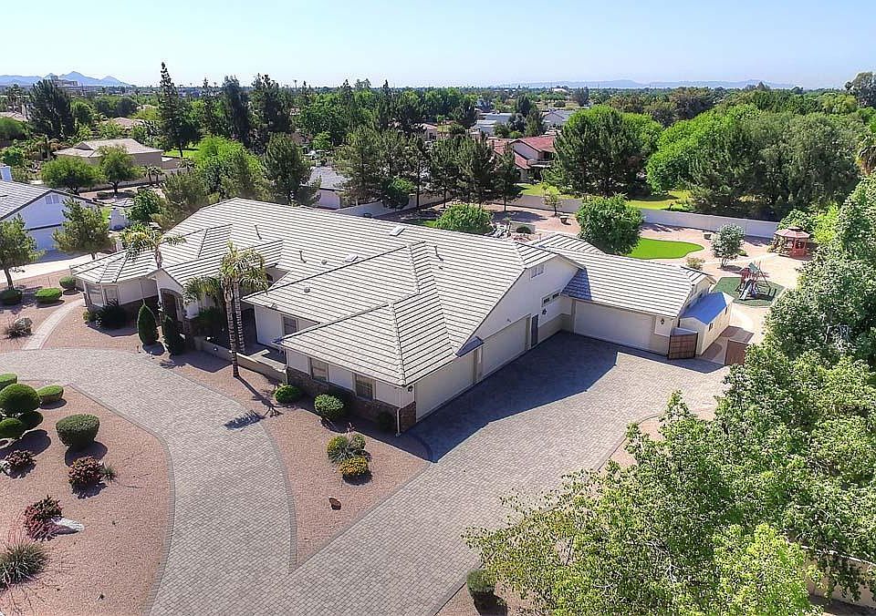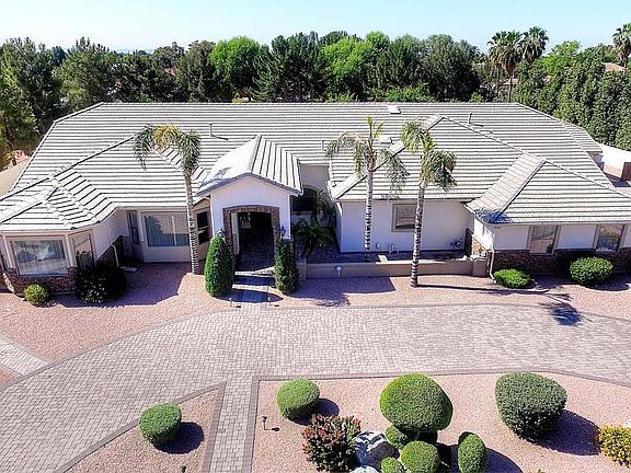 Private gated estate with circular drive leads you to this beautiful home on an acre lot with park-like settings and resort amenities. Fabulous floorplan with 7 total bedrooms plus both formal and informal living areas for entertaining. Meticulously maintained with rarely seen features including a finished basement with three bedrooms, living room and kitchenette.An attached guest casita has separate entrance, living room, bedroom, bath and kitchenette. The rear grounds offer a true resort feel with Baja entry pool w/waterfall, gazebo with hot tub, built-in bbq, multiple grass areas and playground.The raised flower beds, fruit and vegetable gardens, citrus trees, and meandering paths are perfect. Motor court leads to 6-car garage parking with 26 ft. deep bays w/cabinets. RV gate more..