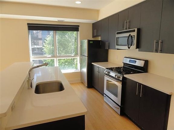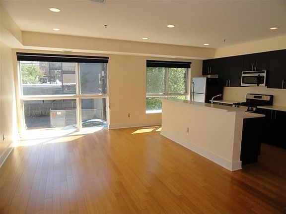Mint condition 2 bed / 2 bath condo apartment in newer elevator bldg. Beautiful & bright floor plan & fantastic move-in condition. Floor to ceiling windows, sparkling hardwood floors, open living room with deluxe kitchen complete with espresso cabinets, quartz counters and full stainless appliance package, washer & dryer, central air / heat. Master bedroom with gorgeous private bath & generous walk in closet. Large common yard & exercise room. Pets negotiable. Easy street parking, rental parking nearby.