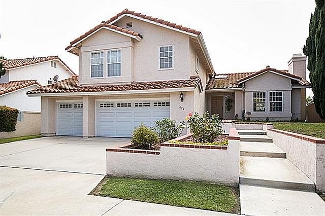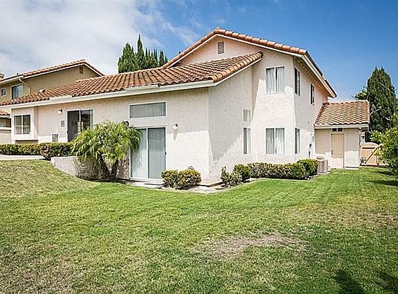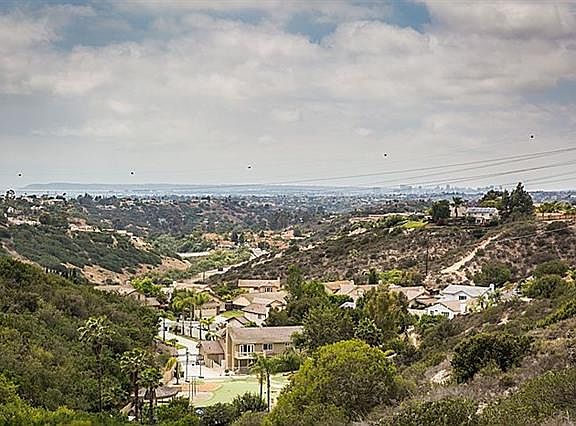 Beautiful split level home with panoramic VIEW to downtown San Diego and Point Loma. Home feels very spacious with vaulted ceilings in many rooms, and very light with lots of windows and a skylight in the foyer. The living room has a window seat and cozy fireplace. There is a large dining room off the foyer as well as a breakfast area off the kitchen. Central air conditioning. Mirrored wardrobe doors. Security system and intercom. Three-car garage with a bedroom added in third car space. ALARM ON.