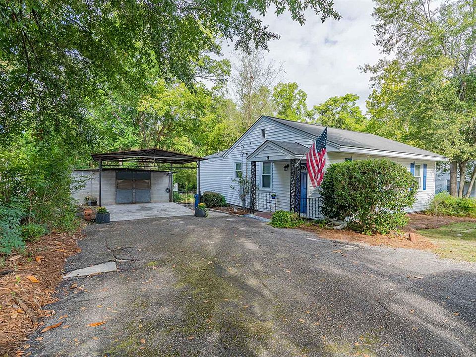Do not miss this ADORABLE updated 2 bed, 1.5 bath bungalow! This home features newer laminate hardwoods throughout bedrooms and den (real hardwoods under the new flooring). The two bedrooms share a beautifully updated bathroom with tile surround shower, bluetooth speaker bathroom fan and light, and tiled floors. The large kitchen has a stainless steel fridge, tons of counter space, eat-in area and built in shelving. In 2008, a half bath and a HUGE laundry room was added. Outside, you'll find a great entertaining space with a screened in porch, covered patio area and an additional stone paver patio all in the fenced in large backyard with 4 large pecan trees! Lots of updates including 10 year old roof, less than 3 year old HVAC, new hot water heater, updated plumbing from the road to the house. The detached garage has electricity run so you could easily use this as your workshop. Don't miss this as it will be gone soon!