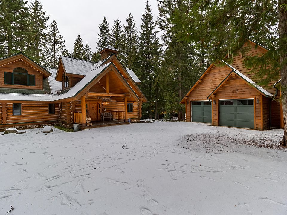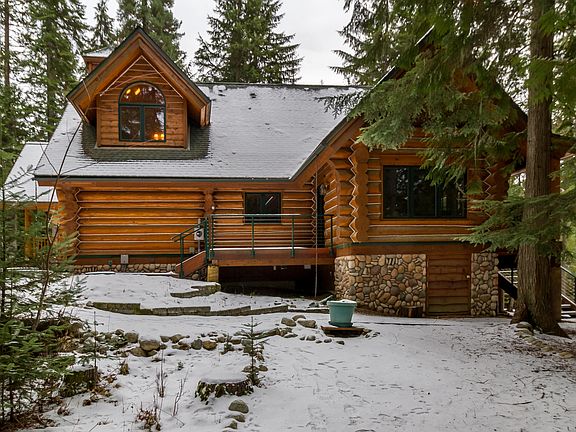 This gorgeous waterfront home will exceed your expectations! 1.6acre lot with 165ft of sandy beach frontage in Pristine Huckleberry Bay. Southern exposure and clear clean waters! Dock and boat slip. Exquisite custom log home that offers a warm and comforting feel with grand windows that open out towards the lake. Main floor master suite has a private deck overlooking the beach and lake. 3 large bedrooms on the second level with a large loft area and private bath with jetted tub. Epi-brazilian hardwood deck, gourmet kitchen with marble counter tops and stainless steel appliances and red fir flooring throughout. Detached garage with ample amount of room for your toys! Extremely private gated community within Huckleberry Bay and all the amenities they offer. Tennis courts, community grounds,