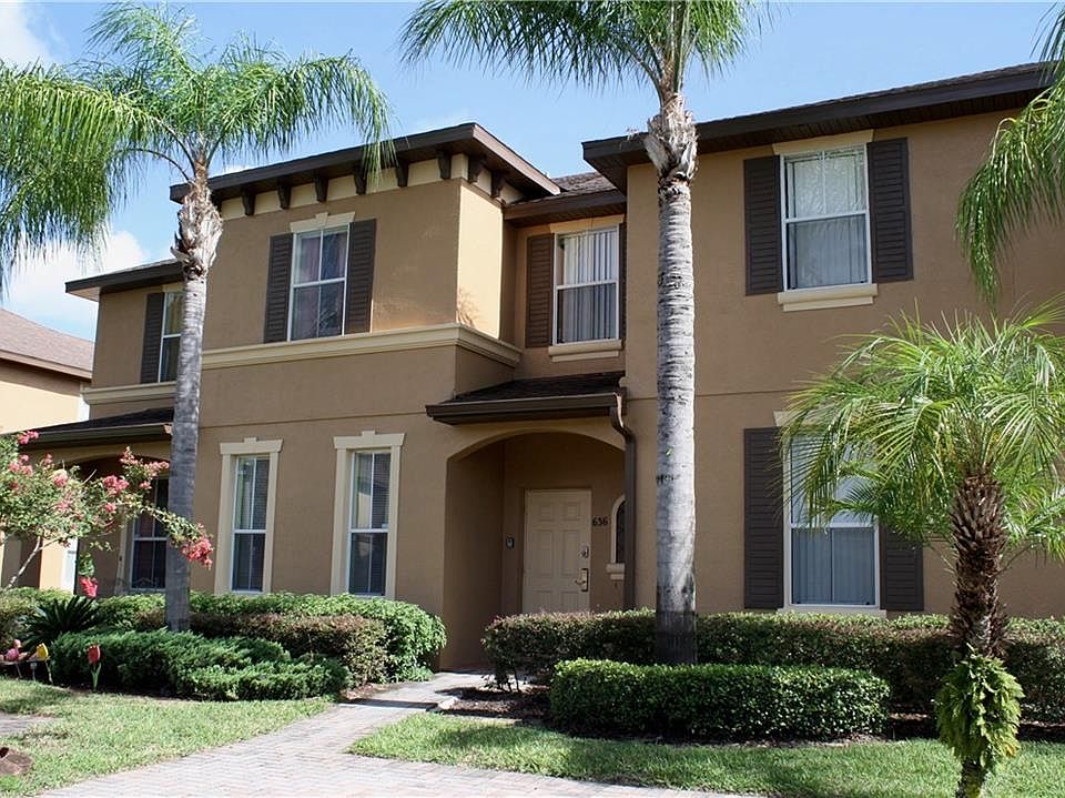 Price drop! This is a spectacular, fully furnished vacation home or perfect permanent residence in the ever popular Regal Palms Resort. Boasting 2 master ensuite bedrooms,(one upstairs and one downstairs) plus two upstairs bedrooms that share a nice sized hall bathroom, this is the PERFECT layout. As you enter this townhome, a hall bathroom can be accessed to your right, which also leads on to the downstairs master ensuite bedroom. The living and dining room leads to a private patio area with no rear neighbors. New laminate wood flooring in the living room and new living room couches are the finishing touch to this room! The fully equipped kitchen has a cute breakfast bar attached and everything you need to prepare a feast! Upstairs are two more bedrooms which share a hall bathroom, and a very spacious master bedroom with a relaxing garden tub(with shower attachment) in the ensuite bathroom. New bedding on all the beds, and the carpet in all the bedrooms is just over a year old. The resort amenities include an amazing clubhouse with full service restaurant,(Frankie Farrell's Pub and Grille) and a darling ice cream parlor. Relax in a heated beach style pool with water slide, lazy river, and zero entry pool. There is also plenty of seating at the tiki bar on the outside terrace and patio! With 4 BBQ areas on the premises, 2 playground areas, a volley ball court, fitness room with state of the art equipment, an arcade, and a separate health spa for when you feel the need to treat yourself, everyone can be entertained. With 24 hour manned security as well, this townhome has it all! HOA dues and maintenance are current so no initiation fee required!