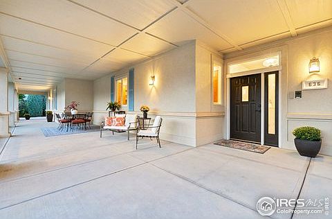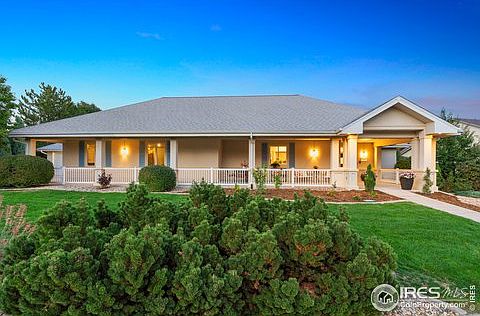 Blur the lines between indoor and outdoor living with this stunning Mediterranean-style villa. The traditional square architecture provides over 3000sf of covered outdoor living space plus six sets of sliding doors open to a beautiful central courtyard. One of the most unique properties in Northern Colorado also has the largest solar array. The 31.76kW owned system, installed in 2019, has provided the owners with a production surplus resulting in significantly lower utility costs. The interior offers both accessibly and versatility with six bedrooms, 5 baths, two attached garages and a magnificent indoor pool and hot tub. Dual kitchen has walk-in pantry and a bank of lower cabinets/counters-plenty of storage in reach for all ages and abilities. Laundry wing, central vac, heated driveway are a few of the long list of features this home offers. Close to amenities, walking distance to park and school, and the incredible design make this home an unparalleled retreat.