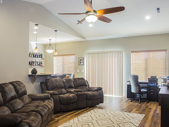 Vaulted ceilings make for a spacious living room, it is open to the kitchen and dining area. The kitchen boasts granite counters, a built-in microwave, plenty of counter space. The master bedroom has a large walk in closet and full bath. Just down the hall are two more spectacular bedrooms and a full bath. Nearly the entire home shines with energy efficient LED lighting, and the Aduramax vinyl flooring is made to last. Wonderful view!