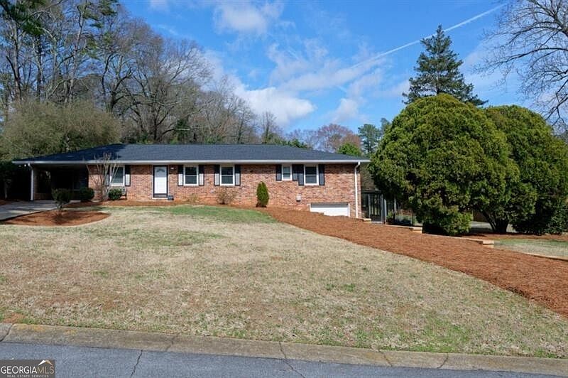 Brick Ranch in East Cobb! BRAND NEW ROOF. 3 Bedroom, 2 Full Baths with oversized Living Room and separate Dining Room with solid hardwood floors. Renovated eat-in Kitchen features fabulous Island, Stainless Steel appliances, Granite countertops and backsplash. Den opens to huge Screened Porch. All Bedrooms have hardwood flooring. Smooth ceilings. Hall Bath with double sinks. Primary Bedroom includes private bath with walk-in shower. Spacious Laundry Room with Washer and Dryer, sink and built-in cabinetry. The screen porch is great for entertaining and relaxing. Amazing backyard! Don't miss the Greenhouse with heat and air. Carport at kitchen level plus separate garage. Unfinished basement ideal for storage/workshop space. Newer windows. NO HOA!