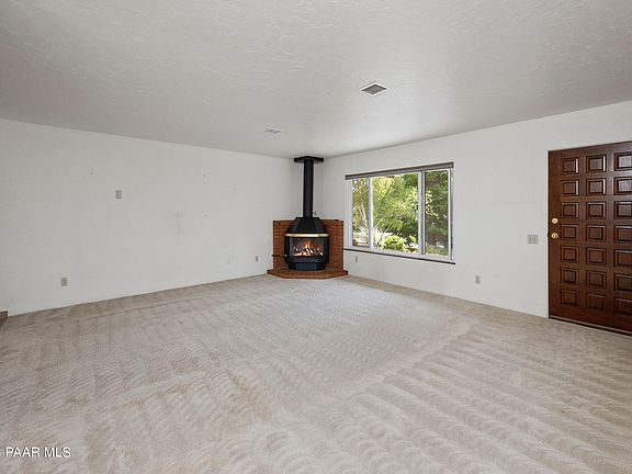 Centrally located in the sought after Yavapai Hills subdivision, this 2,155 sqft home features 4 bedrooms and 2.5 baths. The living room showcases a cozy wood stove (gas) and large picture window overlooking the mature front yard landscaping, while the dining room and kitchen flow into the adjacent backyard via a sliding glass door. The primary suite is oversized with abundant windows for bright natural light, a large walk-in closet and a full bath. The home has an additional three bedrooms, a full guest bath, and a half bath. The large fourth guest bedroom has direct access to the exterior and could easily be utilized as a den, office, or craft room. The low maintenance backyard is very private, fully fenced, and boasts a large, covered patio, making it a great space for types of