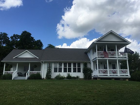 Beautiful yankee southern plantation home. Home is well insulated sitting a top a hill with grand views from every window .Efficient natural gas heat plus a gas fireplace showcasing an antique carved mantel. Oak hardwood floors throughout even in the closets. The walk in MBR closet is big enough to park a Volkswagen in.The kitchen has a mammoth size antique butcher block topped island that can seat 5 comfortably with a breakfast nook nestled in between 2 spacious pantries.All appliances are energy star rated. This home has 3 oversized covered porches for sitting and entertaining.