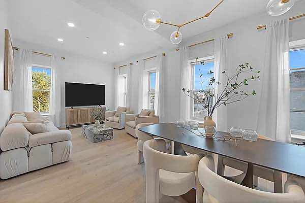 Welcome to your dream oasisa luxury renovated penthouse duplex condo that redefines elegance and sophistication. One month broker fee due at signing! Nestled in the heart of the charming Crown Heights neighborhood, this one-of-a-kind gem is situated on the prestigious and historic Eastern Parkway. With four spacious bedrooms and three exquisite bathrooms, this residence offers the perfect blend of comfort and style. The master suite is a true retreat, featuring a lavish en-suite bathroom and exclusive access to a private roof deck that boasts breathtaking south-to-north views of the iconic Manhattan skyline. Every corner of this home reflects meticulous craftsmanship, from the custom flooring imported from Norway to the uniquely designed kitchen, showcasing striking Italian Quartz islands and countertops complemented by bespoke wood paneling and cabinets. Bathed in natural sunlight, this stunning duplex layout provides the generous space and warmth of a townhome, alongside the panoramic views and airy ambiance typical of a penthouse. Experience unparalleled luxury and make this extraordinary property your ownwhere modern living meets historic charm.