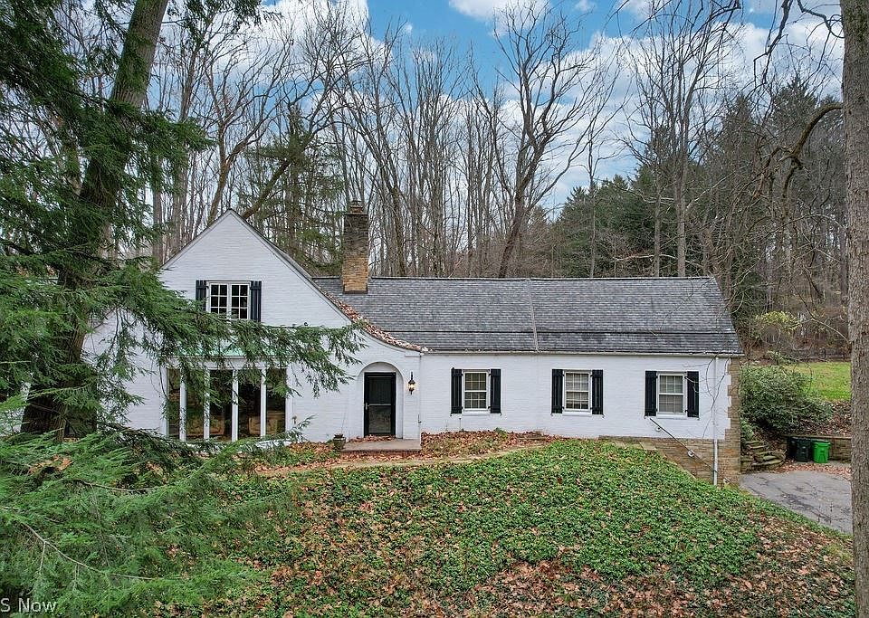 Spectacular 5 acre charming home and scenic property in the Chagrin Falls Township! Farm lovers dream barn or perfect for home parties & entertaining! This brick English country home sits atop the property at the end of an "over the stream and through the woods" winding drive. Enter into the spacious & open family room w fireplace, hardwood floor & bayed front bayed window overlooking scenic views of the property. Doors lead to the charming warm and cozy sunroom with backyard wooded views. Remodeled wonderful kitchen w vaulted breakfast room and doorway leading out to the quiet side patio - perfect for outdoor entertaining. Intimate library off kitchen w built in bookcases and stunning parquet wooded floors. First floor master bedroom suite w fabulous remodeled glamour bathroom featuring walk in tiled shower and 2 spacious vanities along with a large walk in closet. Bedroom two with updated full bath w tiled floor and spacious vanity. Lower level rec room with giant stone fireplace & beautiful engineered wood flooring. Bedroom three or office with private bath and great storage. Custom Amish-built newer barn w 4 European stalls, heated tack room, horse wash stall w hot/cold water, heated feed room, automatic waterers, equipment garage, half bath and laundry room. 2 large fenced pastures w 70x200 all weather riding ring and plenty of extra green space. 2022 new Septic System. 2021 new furnace/AC. Chagrin Schools.No RITA.An amazing opportunity to own a very special property!