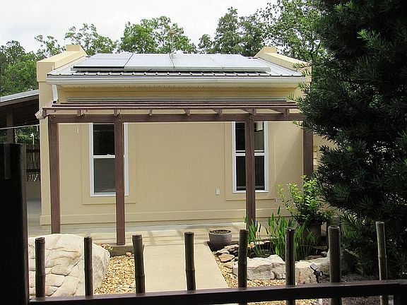 The nature lover will cherish this ultra quiet and private 5 acres upon which the 400 sq.ft net zero solar powered cottage was built using the latest that building science offers for efficiency and durability. This tranquil refuge may as well be 1000 acres because it is surrounded on 3 sides by sizable tracts of undisturbed forest that have seldom seen human footprints for 50 years. Also, you are an easy 30 mile drive from the most beautiful beaches and all the resort amenities found on the gulf coast on 30A. You can enjoy the beach anytime you want without living in the tourist hustle, noise and traffic. The quiet 5 acre Shangri-La has two ponds full of fish, over 100 pine trees and mixed hardwoods that shelter unimaginable wildlife that gives the feeling of being in a remote woodland hide-away yet within the city limits of DeFuniak Springs. Actually you are walking distance to Walmart or Lowes or to the amazing DeFuniak Springs Lakeyard which is an expansive and beautiful city park where you can take walks, run or feed the ducks on the pier. The main suite is ICF (insulated concrete form) construction and is highly insulated and wind and fire resistant with 12 inch thick walls that have a center core with 6 1/2 inches of poured concrete interlaced with steel rebar. Nothing is going to knock this house down and the very low homeowner's insurance reflects the strength of this home. The main structure is designed and situated on the lot to allow for the addition of your dream home of any size and type imagined to accommodate a larger family or other needs. The empty space on the lot is a major advantage for those who wish to build to their own tastes and needs, or for the minimalist the current arrangement is the most low maintenance and durable and affordable of its kind anywhere. There are also two other seperate buildings, the Zen Garden cottage,(192 sq.ft.) and the more distant woodland hobby shed (250 sq.ft.) serving as guest room, tea room, home office or hobby shed that have full kitchen facilities and appliances and a toilet. Another feature of the property is that the newly built hobby shed is situated slightly behind the site of the original house on the property which has a natural separation from the other parts of the land. An acre around this site could be divided into a separate property and another home built on the old site some day essentially providing potentially two lots and home sites on the current property with the approval of the city and appropriate permits and upgrades. Essentially, the main value in this property is not in the current square feet of the home, but in the unique location of the forested environment and the many years of hard work and landscaping design to create a classic zen garden, a one of a kind nature path with huge pond, the beautiful lawns and raised beds. The address in a low crime neighborhood is quiet, full of friendly, helpful neighbors and patrolled regularly by the city police. The solar PV system consists of 26 solar panels and a 3000 watt inverter. The system has consistently produced an annual surplus of energy that is sold back to FPL for distribution to help ease the load in the neighborhood to supply other customers. The utility bill is always on average the minimum of about $30 a month. The low energy cost is not only because of the solar energy production but also the inherent energy efficiency of the award winning building methods and materials used such as ICF, well built insulated windows, exterior insulation, and open or closed cell foam for the roof and walls in some parts. All the buildings are low maintenance with metal roofing and tough, durable stucco finishes on the exterior walls.