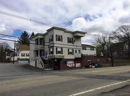 Well kept mixed use property. Long time catering/restaurant business with store front on high traffic Route 110. Business is fully equipped. Building also has two residential units above (one bedroom on the 3rd floor and two bedroom on the 2nd floor). All three units have central a/c and forced hot air by gas heat. Two car garage with office and storage above with it's own heat and central a/c. Lots of street frontage and parking for at least 10 cars in the lot. Property is completely wired for surveillance and security. Everything is included in this low price! See equipment list attached.