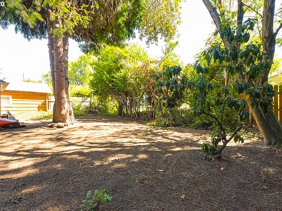 Darling Ranch home in North Portland's Piedmont neighborhood. Interior of home features 2 bedrooms, 1 bathroom. Living room and kitchen. Exterior of home features fully fenced yard with garden beds, huge backyard with deck and detached garage. Walk score of 58 and bike score of 78!