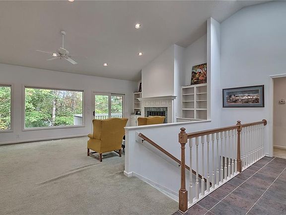 This Keowee Key waterfront home offers a unique combination of desirable features including a deep water platform dock, year around views of beautiful Lake Keowee, a level driveway with ample parking and a floor plan that provides everything for everyday living on one level. The living room has beautiful views of the Lake and surrounding woods, a fireplace with gas logs and a vaulted ceiling with three large skylights. Pocket doors open on to a large office with built-in book shelves and cabinets. The dining room opens on to the living room and kitchen to provide good traffic flow for entertaining. The large kitchen with solid surface counter tops has enough space to satisfy any cook's desire plus a large walk-in pantry with enough space to store those seldom used appliances. The three season screened porch opens off the dining room and is a perfect place to enjoy morning coffee while taking in the views of the surrounding woods and lake. The large master bedroom suite completes the main level. It is equipped with a fireplace with gas logs and a raised stone hearth. His and Hers walk-in closets, double sinks, a tiled walk-in shower, jetted tub and a dressing table for her rounds out the many desirable features of the master bath. Two bedrooms, a Jack-n-Jill bath and a large recreation room provide the extra space on the lower level for visiting family and friends. The large unfinished area offers that much needed space for the aspiring woodworker or handyman to keep cherished tools and supplies.