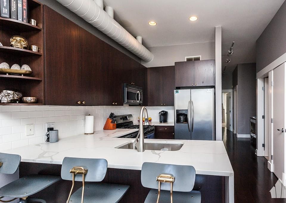 Spacious 3 bed 2 bath penthouse with lux finishes, garage parking and outdoor space! Listing ID #: 59509 Price: $3,500 Property Type: Apartment Bedrooms: 3.0 Bathrooms: 2.0 Pets: No Pets Building Amenities Garage Apartment Amenities Private Deck Balcony Outdoor Space Dining Room Loft Dishwasher Washer Hardwood Renovated Marble Bath Granite Kitchen Eat In Kitchen Walk In Closet Laundry In Unit Gorgeous and updated 3 bed 2 bath penthouse unit in West Loop available 10/1! Dark hardwood floors, living and dining room combo with plenty of room for large dining table set, quartz counters, stainless steel appliances, dishwasher and panoramic city views from the kitchen breakfast bar! Carpeted bedrooms are all of a good size and the master suite is stunning--crystal chandelier, italian marble, double vanity and walk in closet. No expense was spared! Private wood deck off master bedroom perfect for entertaining or grilling. Central heat/ac, washer/dryer in unit with utility room for additional storage, and 1 garage parking spot included at this price. Sorry, firm on no pets.