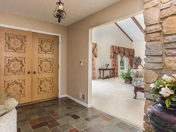 Beautifully maintained 4 bedroom mid-century ranch home w/heated indoor swimming pool located on tree-lined Noe Bixby Scenic Byway. This spacious home sits on a nearly 1 acre park-like lot. The home offers plenty of space, mid-century charm, an open floor plan w/Cathedral Ceilings, two fireplaces, a full basement w/egress window, pleasant views, patio & deck, large eat-in kitchen w/loads of counter & cabinet space, finished lower level w/retro bar, and so much more. This home with its light, airy living spaces is a MUST SEE to truly appreciate. Carved wood doors, stone accents & slate tile welcome you into this lovely space. Generous sized rooms centered around views of the deck, yard, & pool will put this one at the top of your list! So much house for the money and just waiting for YOU!!