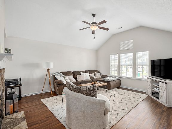 Welcome to this remarkable 3-bedroom, 2-bathroom haven where every detail exudes comfort and style. As you enter, you'll be greeted by a charming entryway that sets the tone for the entire space. The heart of this home is the bright and airy living area, complete with a vaulted ceiling and a stunning stone fireplace, perfect for cozy evenings. This space seamlessly flows into the kitchen and dining area, featuring a sleek bar top island, stainless steel appliances, granite countertops, and a statement backsplash that adds a touch of sophistication to every meal. The bedrooms are both bright and spacious, offering ample room for relaxation and rejuvenation. The bathroom is a sanctuary in itself, boasting a large vanity with a tub/shower combo, providing the ultimate in comfort and convenience. Retreat to the primary suite, where luxury meets tranquility. With its spacious layout, tray ceiling, and abundance of natural light, this room is truly an escape. The en suite bathroom is equally impressive, featuring a double sink vanity, garden tub with tile surround, separate shower, and a large walk-in closet, offering the perfect blend of functionality and indulgence. Step outside to your own private oasis, where the fenced backyard offers privacy and seclusion. Relax and unwind on the covered patio area, perfect for enjoying al fresco dining or simply basking in the sunshine. With its impeccable design and attention to detail, this home is the epitome of modern living. Don't miss your chance to make this exquisite property your own!
