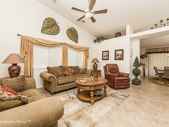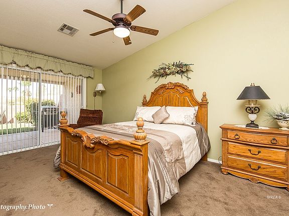 Enjoy life to the fullest in the gated community of Sunset Greens! This community surrounded by the Casa Blanca golf course offers 2 pools and hot tubs, miles of walking paths/sidewalks, lots of common areas and hundreds of palm trees. You can even park your RV or 4 wheeler trailer for an extra fee. Golf privileges at the Casa Blanca golf course! The floor plan on this 1612 sq foot home has dual master bedrooms, bathrooms and walk-in closets. Vaulted ceiling. Tile throughout except carpet in bedrooms. Granite countertops and lights underneath cabinets in kitchen. Shelves and work bench in garage. Epoxy floor in garage. Awesome view from patio.