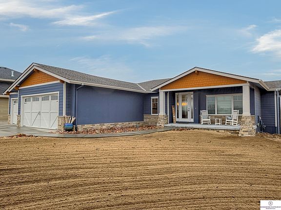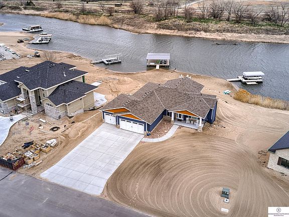 This stunning lake front ranch is the home you have been waiting for, tucked away on a super private sandy beach lot in this gated recreation neighborhood perfectly placed between Omaha and Lincoln w/ no rear neighbors and common space in front of you. This craftsman ranch w/ a hint of modern, is perfect for any lifestyle. The large open main room w/ cozy fireplace, loads of windows, spacious kitchen w/ chefs refrigerator, double ovens, wine fridge, quartz, custom cabs and walk in pantry is ideal for entertaining. Primary suite is oversized w/ enormous walk in closet, his and her sinks, walk in shower and bathtub. Main floor also has office (could be another bedroom) and spacious guest suite perfect for those overnight visitors! Basement w/ polished concrete floor, sauna room, full bar, theatre and 2 extra bedrooms, completed w/ lake bath, changing room and so so much more. Enjoy evenings on your gorgeous patio with built in fire pit, enormous beach front and personal dock.